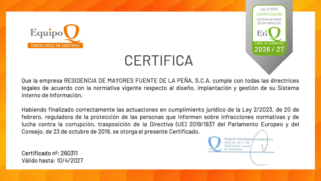 La Residencia de Mayores Fuente de la Peña es un proyecto novedoso diseñado y gestionado por mayores en régimen de Cooperativa, ubicada en un entorno natural privilegiado y situada en el casco urbano de Jaén, ocupando una posición privilegiada en un lugar de extraordinaria belleza natural, gracias a su emplazamiento único de la antigua Fuente de la Peña.
